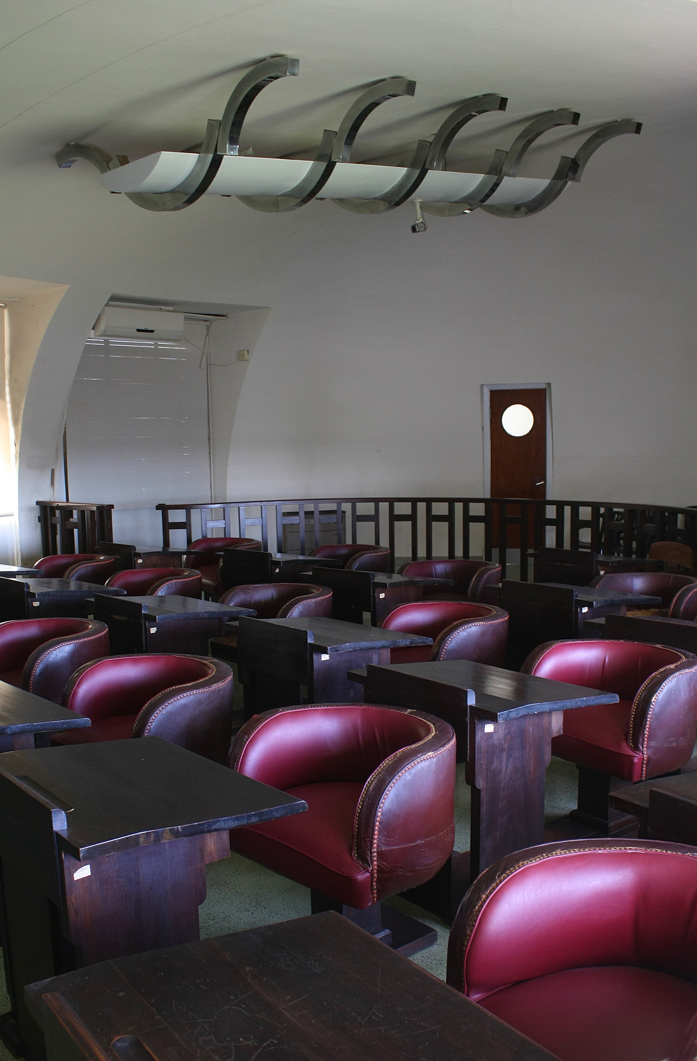 En el recinto se dispuso de una gran luminaria alargada con cromados y de color verde, acompañada de dos plafones, también en cromado y verde, a los costados del espacio del estrado. Dos tipos de luminarias distintas se colocaron en sanitarios, escalera de acceso a la calle y demás dependencias menores, las cuales no existen hoy.