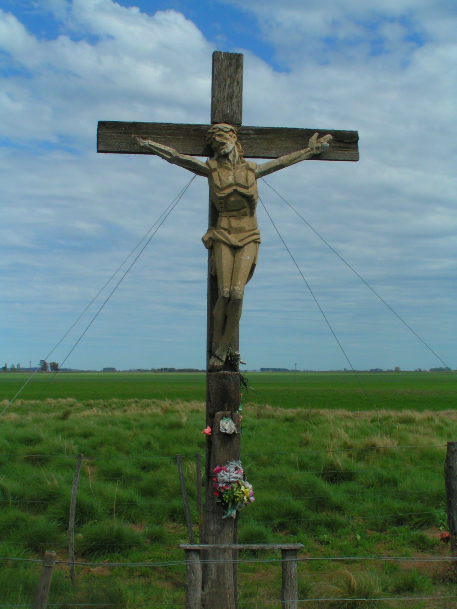Hoy el Cristo sigue firme, al pie del médano, sufriendo los azotes del viento, del sol, del frío, del agua. Sufriendo como sufre su reemplazante en el viejo camino a Epecuén, con a la salada agua a sus pies.