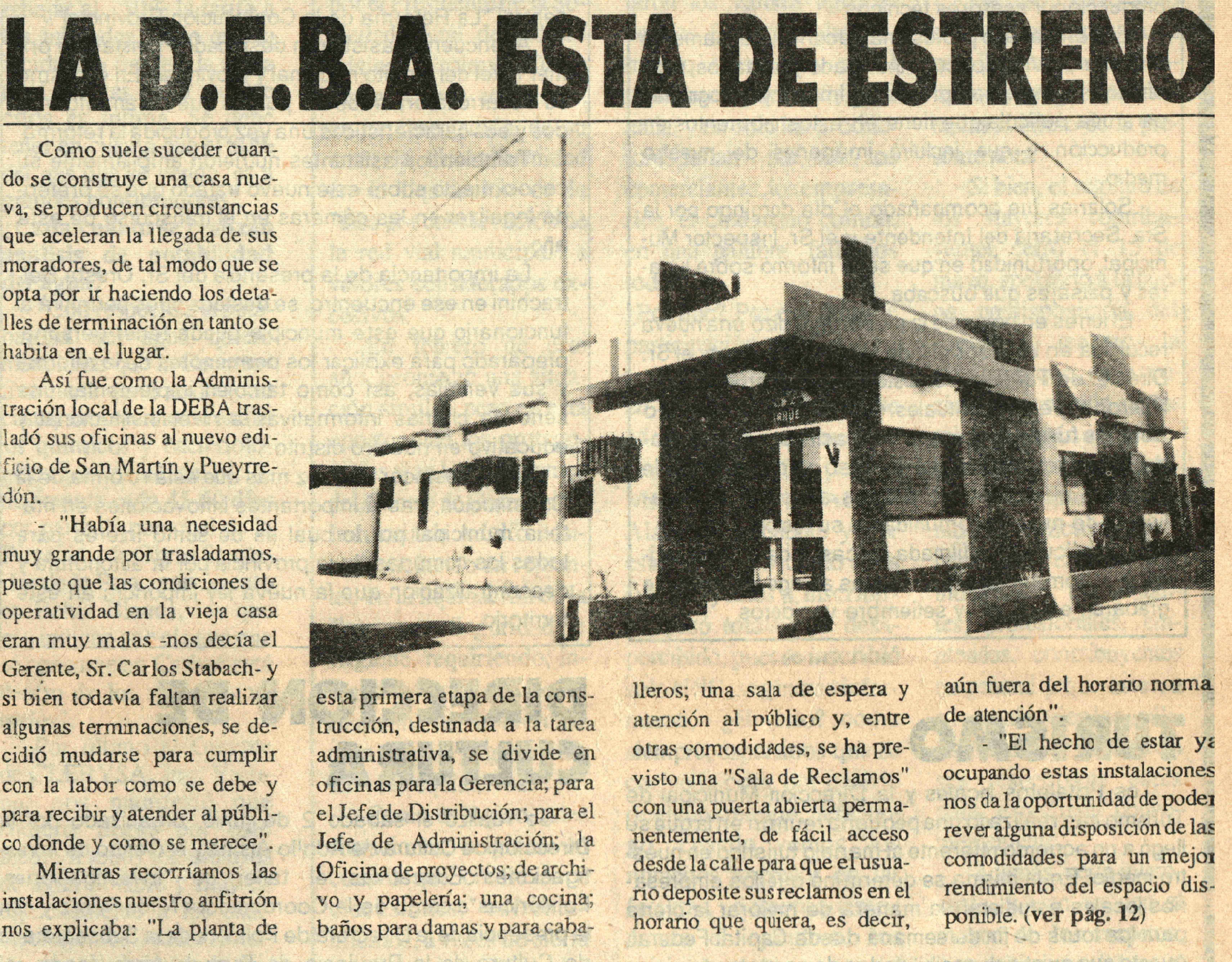 En 1987 DEBA inicia las obras civiles para la administración, cocheras etc.en Pueyrredón y San Martín, lugar donde actualmente funciona EDES SA. El traslado se concreta en 1991 año en el cual el gobierno provincial encara acciones tendientes a la privatización del servicio. El primero de junio de 1997 se hace cargo de la Concesión la Empresa privada EDES SA (integrante del grupo formado con EDÉN SA y EDELAP SA con capitales de AES Corporation y PSEG global de EE.UU.).