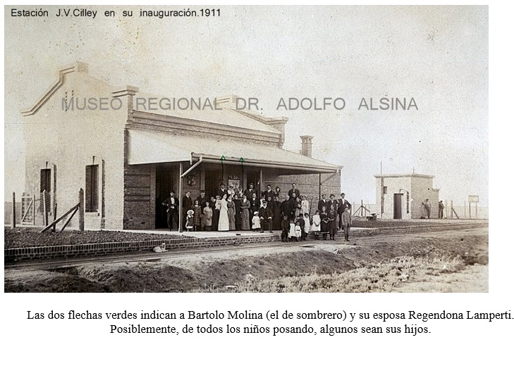 Bartolo Molina, nacido en 1861 en Castellazzo Dormida, provincia de Alessandría (Italia), llegó a la Argentina en 1885 y se radicó en Carhué. Primeramente, se empleó en un comercio local hasta que pudo hacerse propietario del mismo tres años más tarde. Se sabe con seguridad que ya para 1893 era propietario de ese comercio donde habilitó una confitería y bar que se encontraba frente a la plaza. Sin embargo, a finales de esa década, abandona el rubro comercial vendiendo dicho negocio, para abocarse en actividades rurales al hacerse propietario de algunos cuadros de campo en la sección chacras del Cuartel II, específicamente en el Paraje Cilley. Sin poder precisar con exactitud cuántas hectáreas compró, hay seguridad de que tenía en sus manos al menos 300 hectáreas. Un lote de 100 hectáreas por un lado y luego 4 lotes de 50 hectáreas por el otro, separados ambos conjuntos por unos dos mil metros, pero ambos sobre el mismo camino que lleva a la Escuela Nº2. Entre esos dos conjuntos de cuadros se encontraban los de Luis Corradini, antes de Nicolás Graciosi donde se encuentra la escuela, luego el cuadro de la familia Durán, e inmediatamente los cuatro cuadros de 50 hectáreas de Molina (separados por caminos vecinales pero que eran en total 200 hectáreas más), calle real de por medio -ver mapa-.