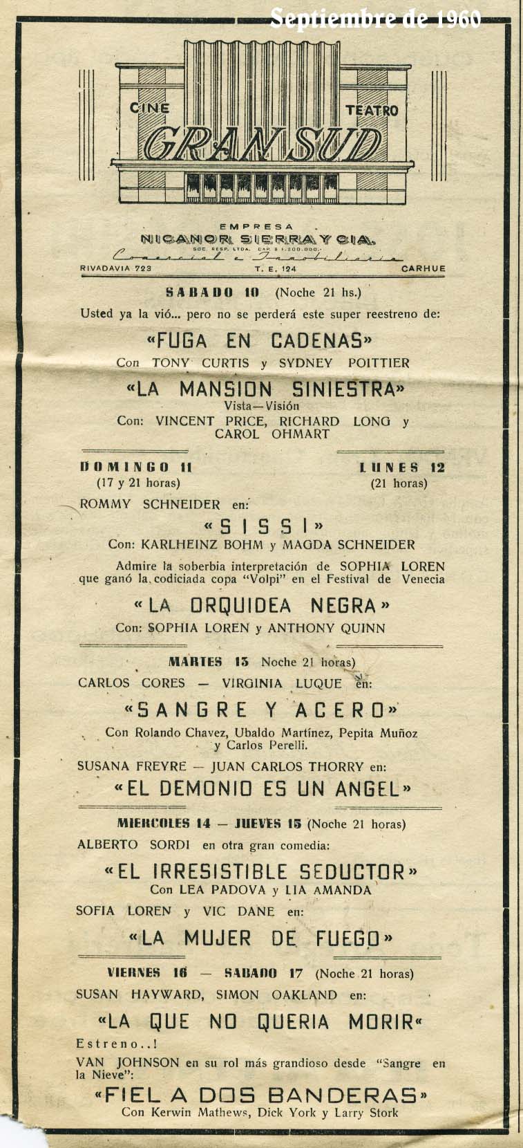 Durante junio de 1959 la firma Nicanor Sierra y Cia adquiere, primero el “Grand Sud” y luego el “Cine Teatro. Español”, el que pocos años más tarde cerrará definitivamente.