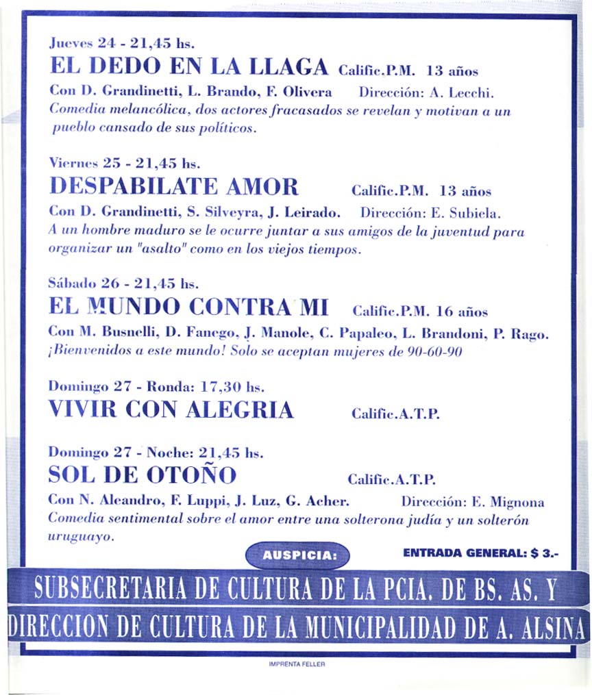 Hoy, tanto autoridades como espectadores, comenzáramos a plantearnos al cine como un medio de expresión, de cultura, de educación, quizá nuestro cine local tendría otra fuerza, otra llegada. Si entendiéramos que el cine no es solamente una actividad de esparcimiento, como una confitería, un restaurante, sino que es un medio que permite enseñar otras formas de vida, otras formas de pensar un hecho, una historia, quizá, porqué no muchas realidades personales podrían ser diferentes. El cine no es solamente un emprendimiento comercial privado, es mucho más que eso.