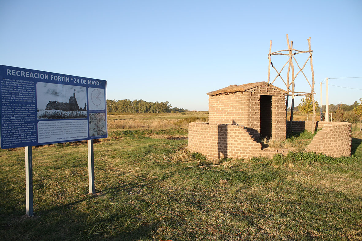 El fortín “24 de Mayo” original se hallaba ubicado a 3500 metros de la recreación y era la Comandancia de la Línea Derecha de fortines, hacia Guaminí.